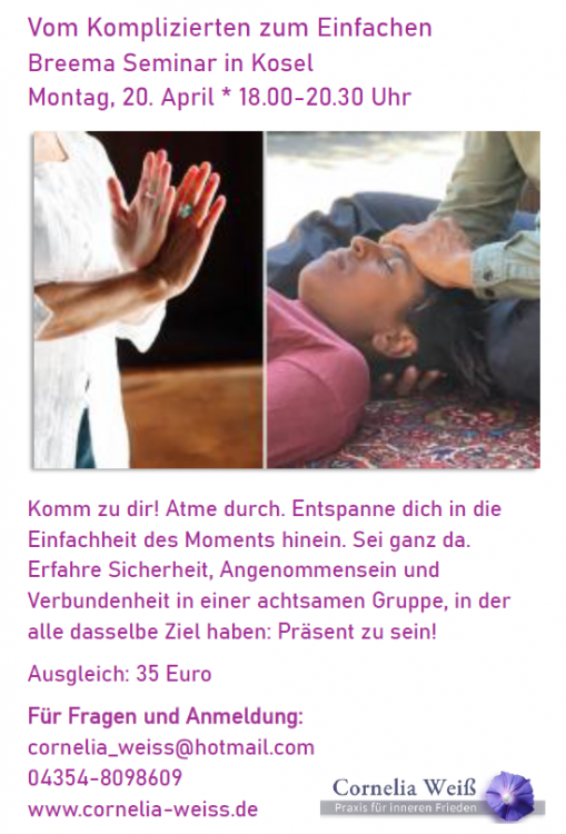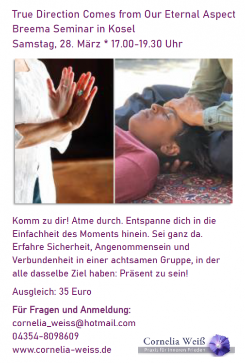 Durch Breema verstehe ich wahre Gesundheit als einen Zustand der Harmonie mit dem Dasein. Die Breema-Körperarbeit kann dir helfen, diesen Zustand zu erfahren. Brainspotting hilft dir, Altes loszulassen und neue Türen zu öffnen.